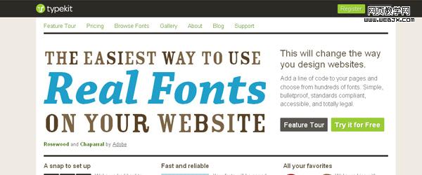 接下来的解决方案依赖于@font-face来实现——每一个多少都算是一种服务——这意味着:它们都使用同样的基本技术,但是它们提供不同的字体库,授权选项,以及支付计划;是的,大部分是需要付费才能使用,但这可能就是所有网络字体的未来。