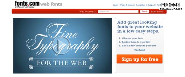 流行的字体资源font.com也开启了一项专门的网页字体服务,他们自称提供了超过8,000种字体由你在网站上使用。和Typekit类似,它提供的是基于的预订的服务,但它的价格是月度的。和Typekit相比,它的价钱并不贵,但字体的限制要少得多。免费包相比之下相当的友好——无限制地使用8,000种字体,不限网站数量。专业包允许你下载50种字体到你的电脑中,并在设计中使用这些字体。