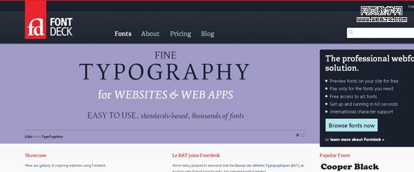 曾为一些世界上最大的企业服务的著名网页设计公司Clear Left与OmniTI合作,发布了Font Deck。Font Deck是另一个基于预订的服务商,但你只需要为使用的每个单独的字体付年费,这对那些只想在个人博客中使用一到两个字体的人来说很完美。