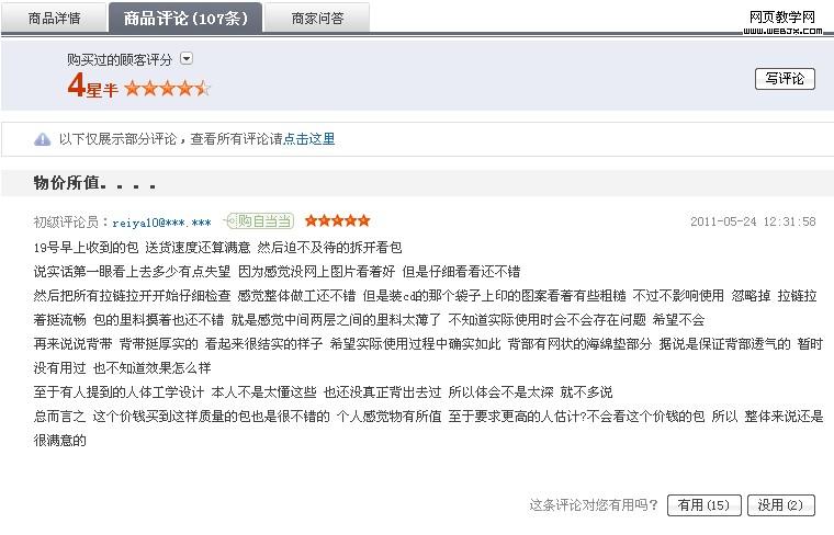 当当网的评论一般都很详细,评论者的等级积分制度,也促使一些用户很愿意发表详尽的评论。