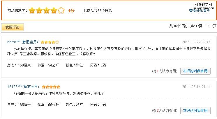 网站信息交互设计:电商网站评论页面的设计