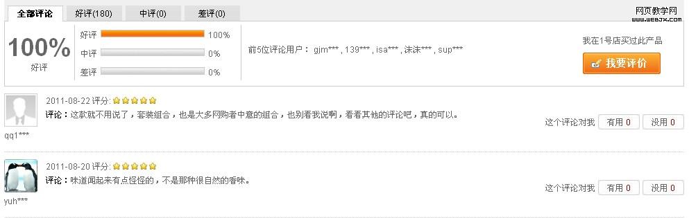 这是最简单的一种评论模块,拍拍和麦包包采取的就是这样模式。