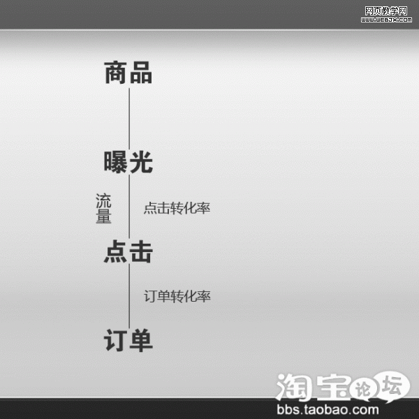 紧随其后的就是曝光,首先你需要吧商品展现在买家面前,才可以谈到其他的,人家都看不到你的商品那么何谈购买?