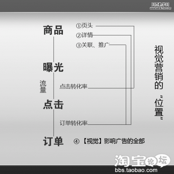 视觉营销影响宝贝详情展示给买家时的接受信息,从而影响订单转化率。