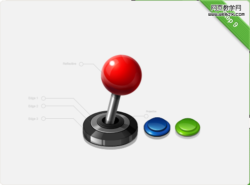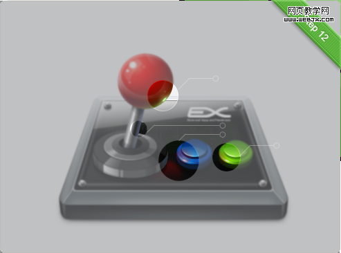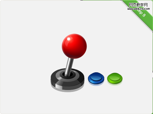 强化手柄把头以及摇杆的光效,突出各个部分不同的质感,注意一些添加投影的部分。