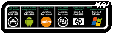 目前,主流移动互联网应用平台包括iOS,Android,Palm,Blackberry,webOS,Windows Mobile六大平台。上线时间都是在08或09年,最早的是08年7月上线的Apple 的iOS。