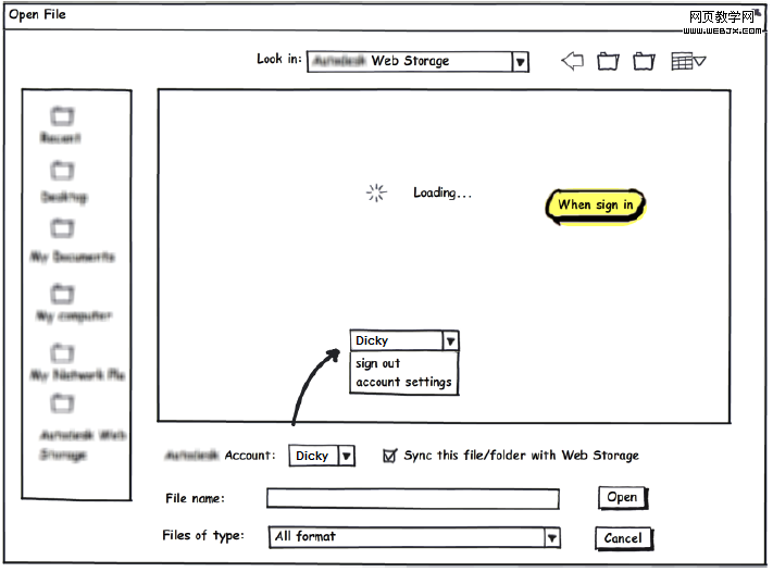 最近参与的project中需要把用户登录嵌入一个file open对话框,让用户在打开云端文件之前确认登录。