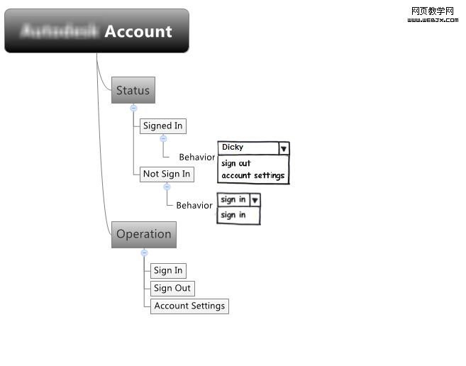 XXX Account标签表示了后续Combo Box中的所有内容都是为其服务的,下拉菜单中的命令要么表示状态,要么表示操作,要么用于导航。 前面提到,Sign in是在用户尚未登录的情况下菜单显示的命令,此处Sign in表示一个交互动作。 当用户已经登入后,菜单中显示的将是当前的<User Name>, 意味着该用户已经处于logged in的状态。当这里显示Sign in command的时候,表示当前尚未登入,需要进行登入操作。 如下图所示: