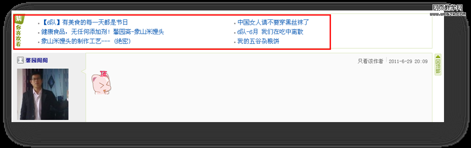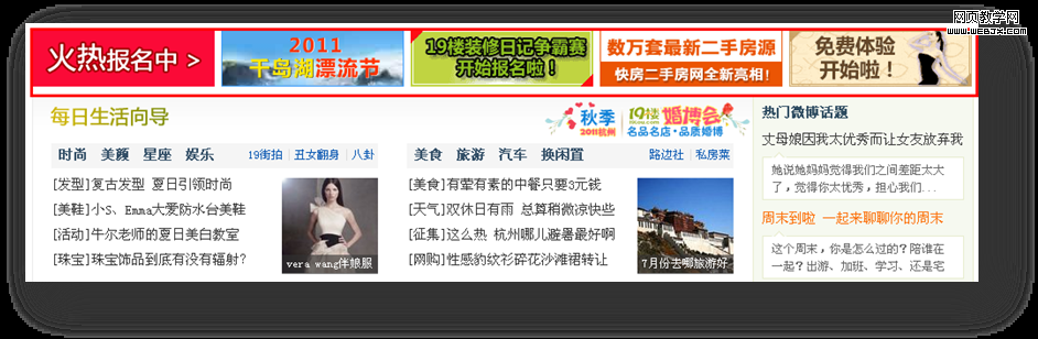 右边侧栏的banner广告和推荐位,这个位置的banner广告推荐效果非常好,可以引起用户注意,同时不引起用户反感。这个在左右边栏各个栏目下都可以考虑增加。