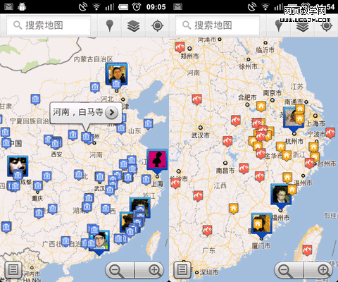 用法很简单,可以直接浏览放大查找,也可以把三张图叠加浏览。可以很方便的进行组合类型和单一类型的查找,结合手机,尤其Google Latitude(谷歌纵横)服务相当实用。如此看来,密密麻麻值得一走的地方还是挺多。
