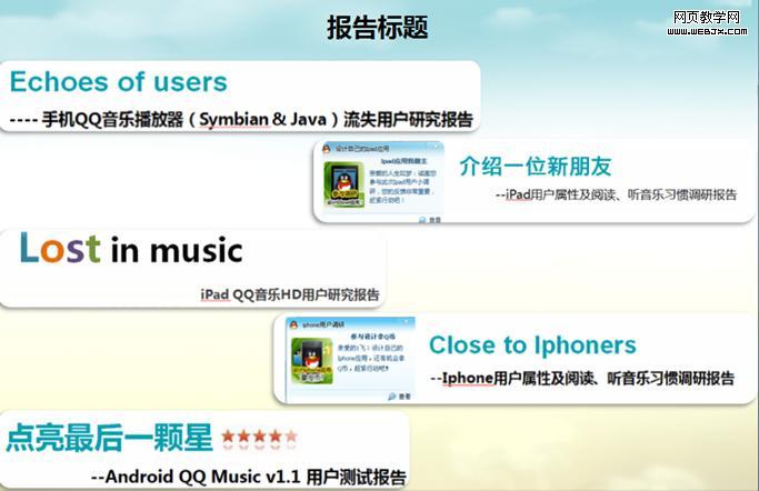 来到腾讯以后,做过iPhone阅读器、iPad阅读器、iPad音乐播放器的用户理解,目前正在做iPhone QZone的用户理解工作。做得次数多了,方法在不断改进,也积累了一些经验,与大家一起分享,希望帮助我们更了解用户。