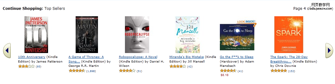 这是最初的Carousel的表现形式,如同旋转木马一般,通过点击左右两端的箭头,屏幕上的每本书会依次轮转到用户眼前。Carousel可以用来帮助用户选择元素或者定位目标, 如今繁多的软件中,设计师们把Carousel的应用和表现又拓宽了很多,从而流行于很多web站点和应用软件中。