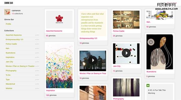 这样的网站我找到了8个,他们都有相同的特征。在文章末尾列举了3个JQuery插件, 可以很方便的帮助你达到这些效果。