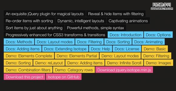 一个JQuery动态布局插件,CSS侧边浮动。Isotope