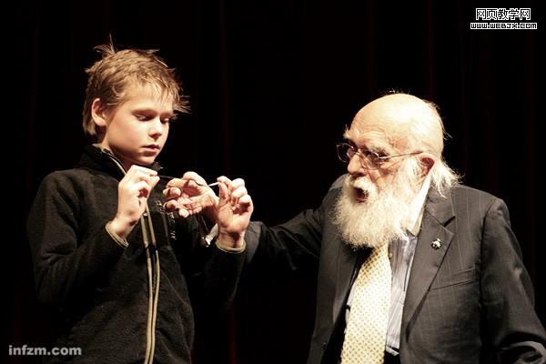 82岁的兰迪今天晚上精神矍铄,西装革履,戴着黑框眼镜,从头发到眉毛,再到圣诞老人式的大胡子,都是雪白色的。他一手拄着拐杖,一手拿着麦克风,对观众们说:“身为一名魔术师……我今天要向大家揭示一点魔术的秘密。”