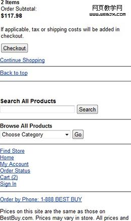 图 10—在Best Buy 移动站点中,没有情境导航