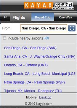 图 6—Kayak 手机页,没有链接