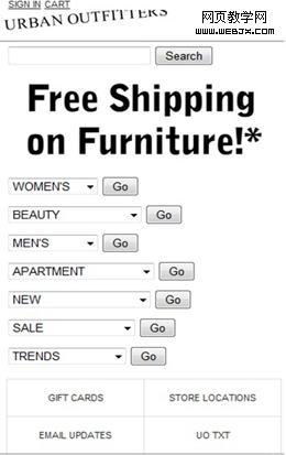 图 4—Urban Outfitters移动站点的垂直导航