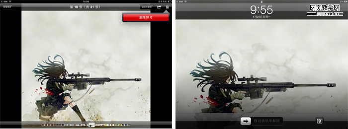 iOS中照片界面十分简洁,有相簿和照片类别。进入后可以查看类别下所有图片和单张图片。比较方便的一点是,在ipad上锁屏页面会提供一个相册的快捷入口,点击图标后便可以直接查看图片。