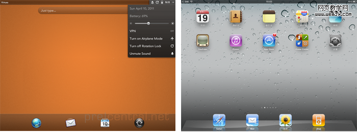 下面就将其与ipad上的iOS系统的相关界面进行比较。