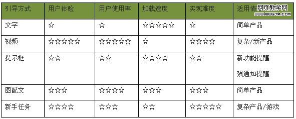 那么,我们到底应该在什么情况下,用哪种新手引导方式会是性价比最高的呢?现将上述新手引导方式整理如下表,以作参考: