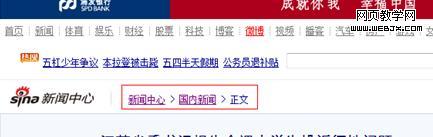 新浪网面包屑导航的下划线植入产品VI,可以称得上一举两得的设计。