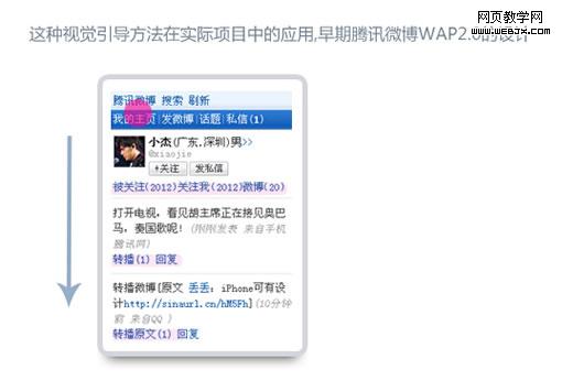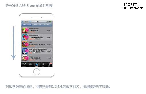 举几个例子关于在移动终端设计中所注意的视线移动问题,移动终端设计跟PC端设计有很多相通的地方,特别是在高端机型和大屏幕机型上, 希望这些在WEB、 平面设计中的经验能够大量用在移动终端设备上,指导我们做出更多更好用户体验的产品。