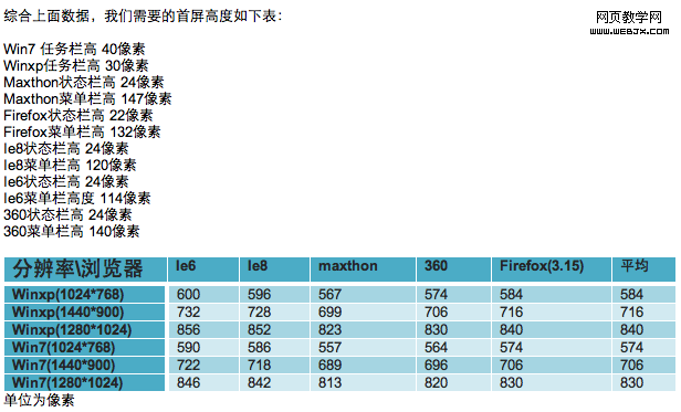 然后,B 觉得这点子不错,根据内部统计系统中的操作系统、浏览器分布和屏幕分辨率等数据,结合浏览器状态栏、任务栏等高度进行分析: