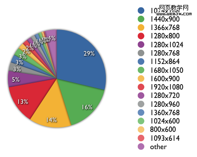 1) 1024×768, 1440×900, 1366×768, 1280×800 仍占了绝大多数