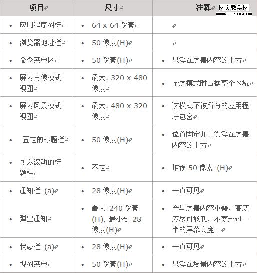 以下是Palm Pre 2 手机320×480的屏幕中各个元素所占的大小: