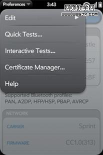 上面提到命令菜单被用来防止webOS系统的常用操作,那些不常用的操作就被放置到了命令菜单区里面。命令菜单区默认状态下包含3个选项:编辑、偏好和帐户、帮助。在这里,webOS系统在命令菜单区把常用的操作放了出来,而把不常用的操作放在了应用程序菜单里面,从而使得应用程序的易用性大大的提高,你不需要从一堆操作中寻找常用的那几个操作。
