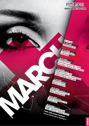 将元素变大,也意味着让它更有力量,可以将一些平淡无奇的元素变得吸引人。在下面这个例子中,虽然只是以文字为主,但却一点都不枯燥,将背景中的人物放得很大,甚至超出了版面,但读者仍然知道它的意思,而且文字呈角度摆放,同样传达了一种很强的冲击力。