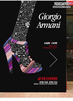 下面这张图是一商场的品牌海报,一个尺寸非常大的装饰元素与各品牌logo相结合形成吸引人的视觉焦点,由于文字很小,所以装饰元素与文字一起与整个页面仍然形成了对比.