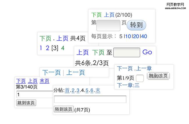二.在众多的手机端应用中,还可以看到很多这种来自服务端的翻页控件,多以一连串文字链接的形式展现。通常组成这些控件的可以是以下这些元素: