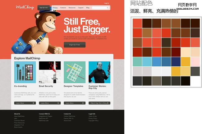 他们专门为客户公司提供强大的电子邮件营销服务。鲜亮的色彩预示这是家充满激情活力的公司。
