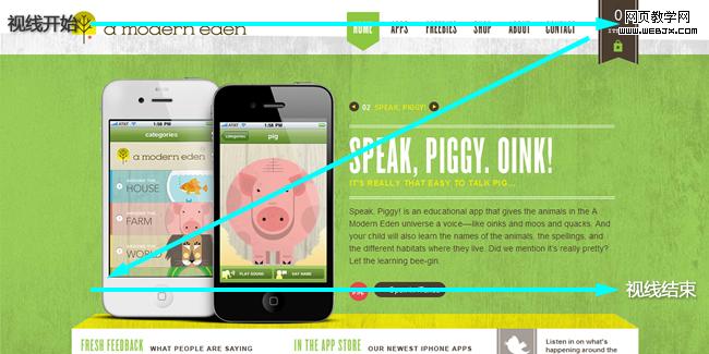 一般访客的视线会从页面的左上角的开始,扫视网站的顶部(Logo,导航)