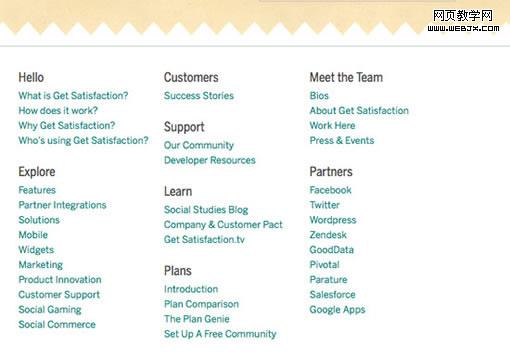 访客通常在主导航找不到他们要找的东西时会去查看页脚导航。