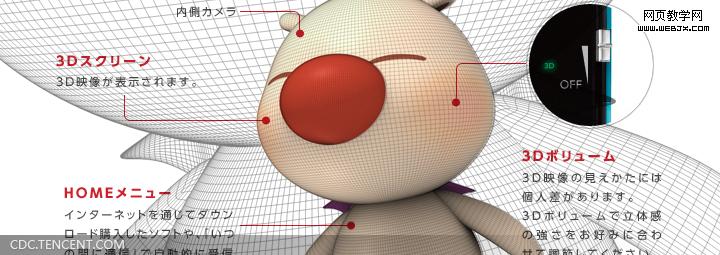 3DS 的正式公开,伴随的是肉眼可直接观看3D 效果技术的公开,让我们可以抛弃3D 眼镜。而且,任天堂也创造了一个名叫做“3D 音量(3D Volume )”新控件。以下是Nintendo 官网对裸眼功能的一些解释: