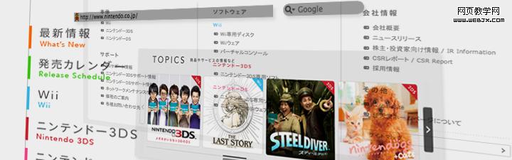但是在3D 世界里,上面这种问题就一下子变得不是那么的明显了。原因就是,3D 空间的信息不再只是可以向上下左右扩张性的平铺,同时也可以纵向的进深。控件不再和页面内容抢占一块地盘了,它们会分布在不同的层上。甚至网页本身的内容,也可以分布在不同的层上。所以可能连网页设计也与现在大不相同了。这样,我们所有的Layout 和交互都将变得不同。进行创意的空间也变大了。当然,目前更多的应用3D技术的还是电子娱乐领域,在这里,扩展新奇的娱乐方式是必不可少的。Nintendo作为一个老牌公司,一直很看重游戏性和创意,在这里祝他们大卖~