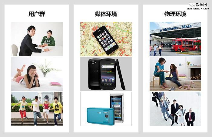 好的信息架构是围绕产品的用户环境建立起来的,因此有必要简单了解一下手机端阅读类产品的各种用户环境。出于全面的考虑,将用户环境划分为用户群、媒体环境和物理环境三部分进行简单的分析: