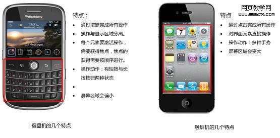 触摸屏手机最主要的特点是直接操作屏幕对象。对用户来说,不需要进行映射的转换,因此易学性更强。但是由于手机的使用场景很特殊,或站着,或在行走,或只能腾出一只手等等,在这些时候要精确指点操作也有一定的难度。