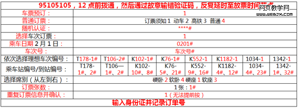 为此,认真研究了95105105电话订票的程序,在预先确定“车次、发到站、出发时间”的情况下,完全可以大幅缩短通话时间,从而抢得先机!于是,让朋友按照理想车次、理想席别做出排序,然后套用电话订票流程,最终为朋友提供了一套给力的订票攻略,如下图!