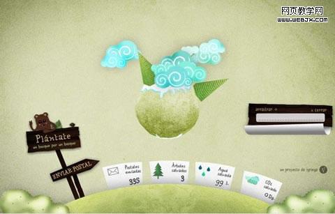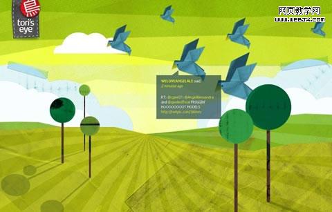 只是简单的绿色,通过调节透明度设计出如此美观的Twitter可视化工具。可要知道:这个网页只是用了XHTML/CSS和Javascript,给力吧!