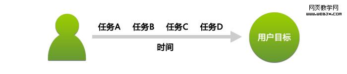 我们可以从任务模型来理解交互效率。一般的移动端的使用行为可以简化为下图:用户通过交互操作完成一系列任务,消耗了时间,达到用户目标。