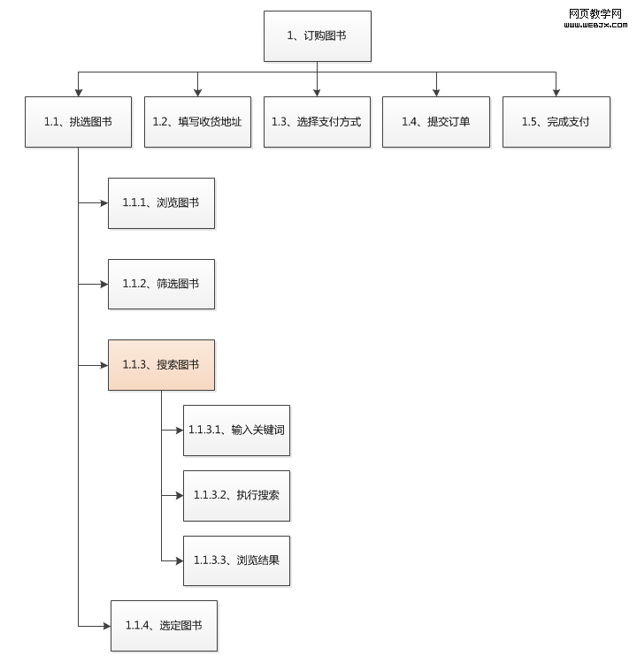 层次任务分析可以让你尝试探索用户通过各种不同的方式来完成相同的任务。我们对子任务进行拆解。此处仅以挑选图书为例。