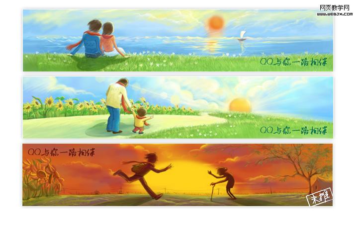 在公司成立12周年之际,接到QQ“温情banner”的需求。以“QQ与你一路相伴”为主题,带给用户一丝别样的温暖。最终选定三个用户年龄段发生的故事:恋人、小孩、老人: