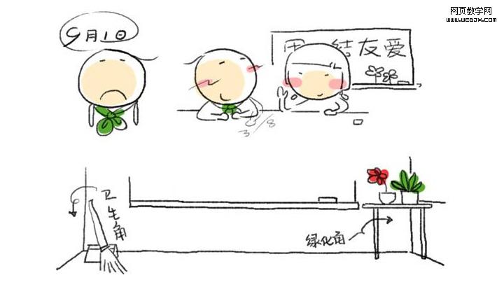 在绘制过程中,寻找一些教室、绿化、黑板报等摄影作品,从中吸取构图灵感与光线运用经验;从一些表达自然的插画作品中提取色彩表达的画面基调。