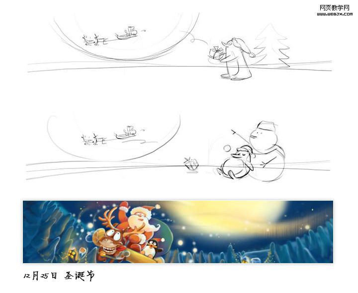 画面内容构思,节日banner不仅仅是直白的节日提醒,我们正在默默努力,一步一步创新。敬请期待2011年的节日登录banner,感谢阅读:)