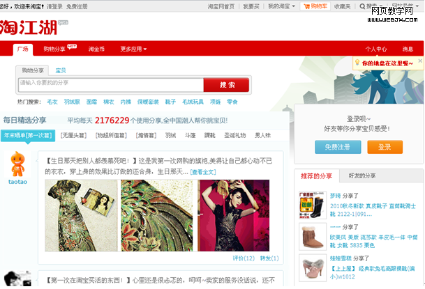 社会化购物中不得不说淘宝网的淘江湖,个人认为淘江湖定位不明确,导致淘江湖在产品上功能过于复杂,完全是当成一个社交网络来做,不过这也算是淘宝的社会化战略的重要部分吧,关于淘宝网的社会化,这个留着以后慢慢写。