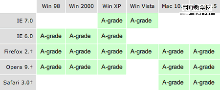 它也能为你减少了很多兼容性问题,它支持被yahoo评为A级别的浏览器: